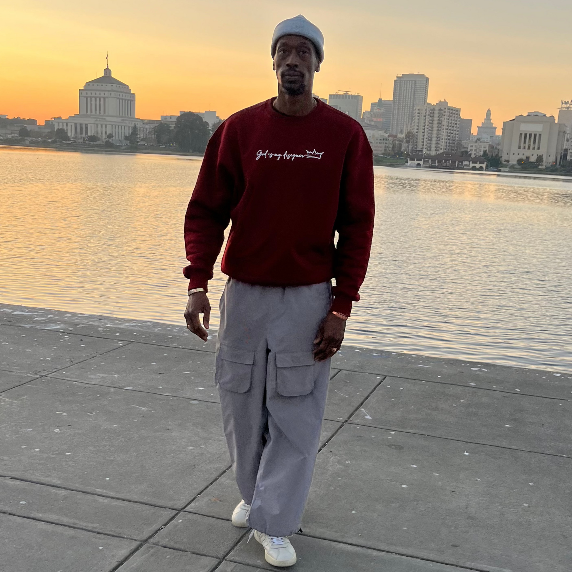 The FAITH OVER FEAR Crewneck in Covenant Burgundy blends quiet authority with purposeful design. Minimal “God Is My Designer” script on the chest keeps the look clean, while the technical F.O.F cross on the back delivers a bold statement. Structured fleece ensures warmth and comfort, ideal for layering or standalone wear.